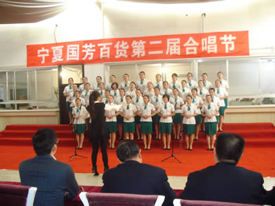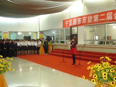(主持人在現(xiàn)場宣布“寧夏國芳百貨第二屆合唱”節(jié)開幕)
