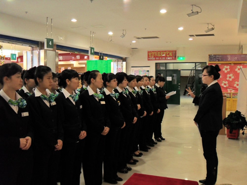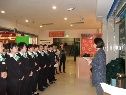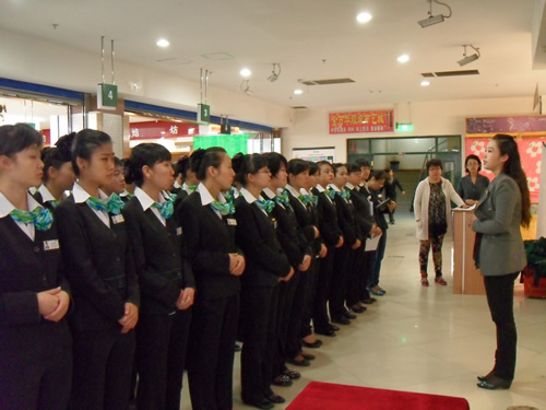 2013年4月9日是一個普通的工作日,但卻是國芳集團收銀部崗位技能管理水平提升和發(fā)展歷程上非常重要的一天,因為今天國芳集團零售板塊蘭州地區(qū)收銀員職業(yè)技能評定工作正式拉開帷幕。早上8點整,在蘭州國芳綜超廣場店正式召開了本次活動的動員會,動員會由收銀部經(jīng)理韓曉麗女士主持,蒞臨現(xiàn)場的公司領(lǐng)導(dǎo)有集團總裁助理、財務(wù)總監(jiān)余麗華女士,集團總裁助理、人力資源總監(jiān)孟麗女士,集團培訓(xùn)經(jīng)理、蘭州百貨人力資源經(jīng)理孫曉輝女士,綜超人力資源經(jīng)理馬琳先生。