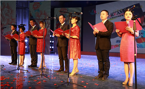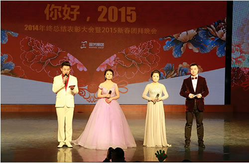 2015年2月9日晚,在蘭州37中(蘭州女子專業(yè)中等?茖W校)5樓藝術廳內,國芳集團“你好,2015”2014年終總結表彰大會暨2015年新年盛典溫馨開演。恰逢國芳集團成立十五周年,晚會現(xiàn)場充滿了溫馨、喜慶和感動。晚會延用了去年的大型LED顯示屏、多組VCR、微信平臺等廣受好評的元素,并創(chuàng)新的融入了中華名族傳統(tǒng)的禮儀文化,漢唐古典舞的壯觀優(yōu)美,員工孩子們《弟子規(guī)》的可愛表演,都在為晚會添加了精彩度的同時,將傳承禮儀所需要的高尚美德這一思想深入的傳達到每一位員工的心中。員工們精心準備的節(jié)目一個比一個精彩,極具藝術表現(xiàn)力和觀賞性,董事長也被熱烈的氣氛所感染,親自上臺演唱了兩首歌曲,把晚會推向了高潮。最后,國芳集團年終晚會在祥和熱烈的氣氛中落下了帷幕。讓我們共同期待來年的精彩!