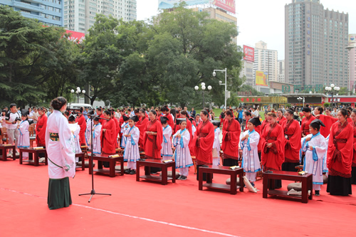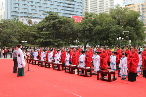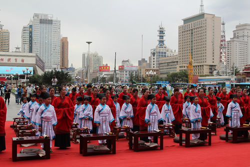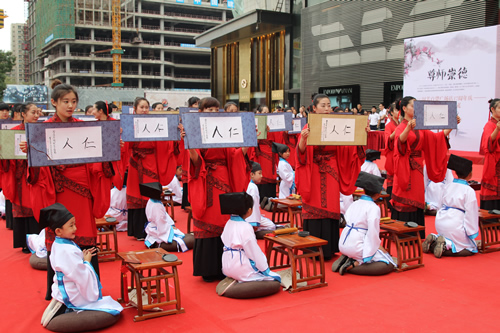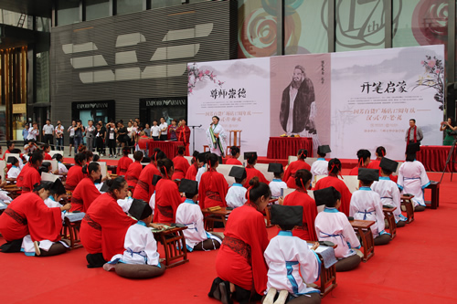 傳承中國文化,啟發(fā)學(xué)子奮發(fā)向上,再現(xiàn)古典禮儀之莊重恢弘。9月10日,國芳集團(tuán)在東方紅廣場(chǎng)舉行大型漢式拜師禮開筆禮儀式。本次活動(dòng)共招募40名6-9歲的學(xué)子參加。拜孔子、點(diǎn)朱砂、擊鼓明志,引眾多市民觀禮。