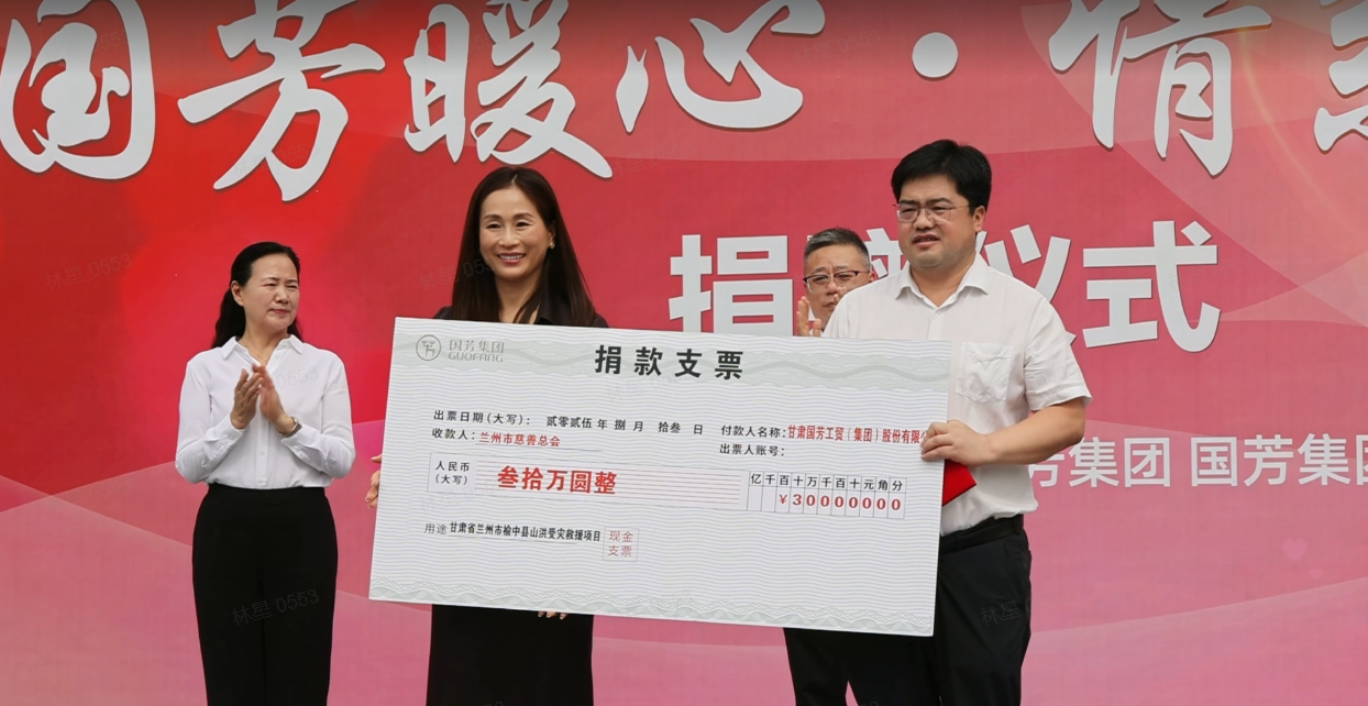 2025年8月14日,甘肅國(guó)芳工貿(mào)(集團(tuán))股份有限公司舉行“國(guó)芳暖心 情系榆中”——捐贈(zèng)儀式,在東方紅廣場(chǎng)蘭州國(guó)芳百貨正西門(mén)隆重舉行,集團(tuán)各子(分)公司員工踴躍參與,以集體之力匯聚愛(ài)心暖流,用實(shí)際行動(dòng)為榆中縣受災(zāi)地區(qū)注入溫情與動(dòng)力。